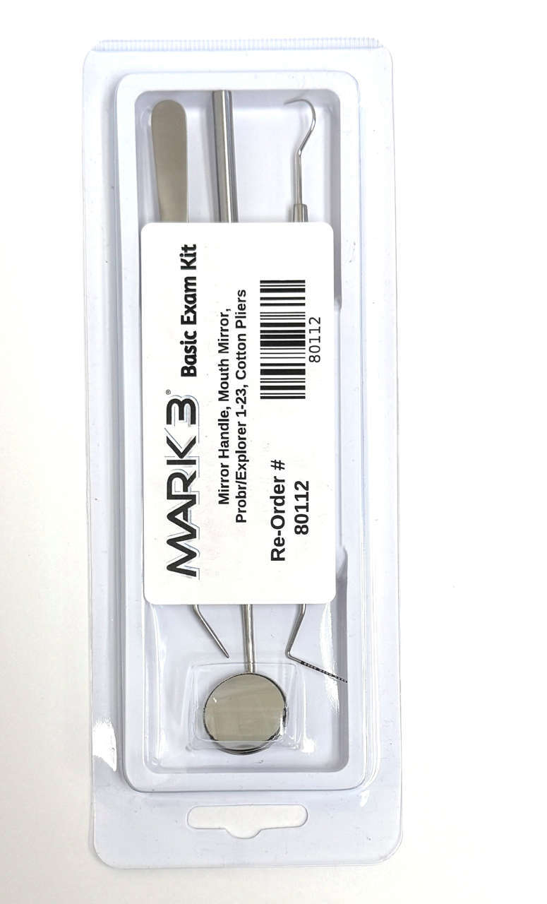 MARK3's new instrument exam kit contains the essential instruments needed for a basic dental exam. MARK3 Instruments are crafted with high quality stainless steel, designed to be durable and corrosion resistant.